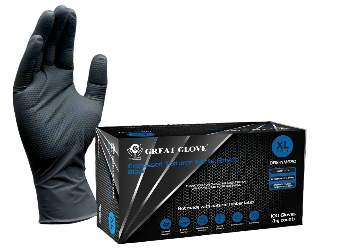GREAT GLOVE 3D *6mil *Diamond Grip *Black *Box of 100 Gloves *M-XL
